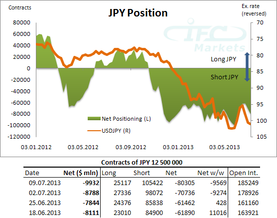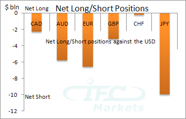 Yen firmly holds the leadership by the largest net short position against the US dollar. Last week, it rose to -9.9 billion USD. The sentiment remains bearish.
