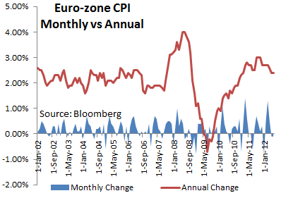 O índice de preços ao consumidor na zona do euro ficou em 2,4% - 16.7.2012